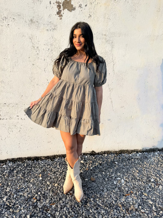 Sold outOlive Gingham Puff Sleeve Mini Dress