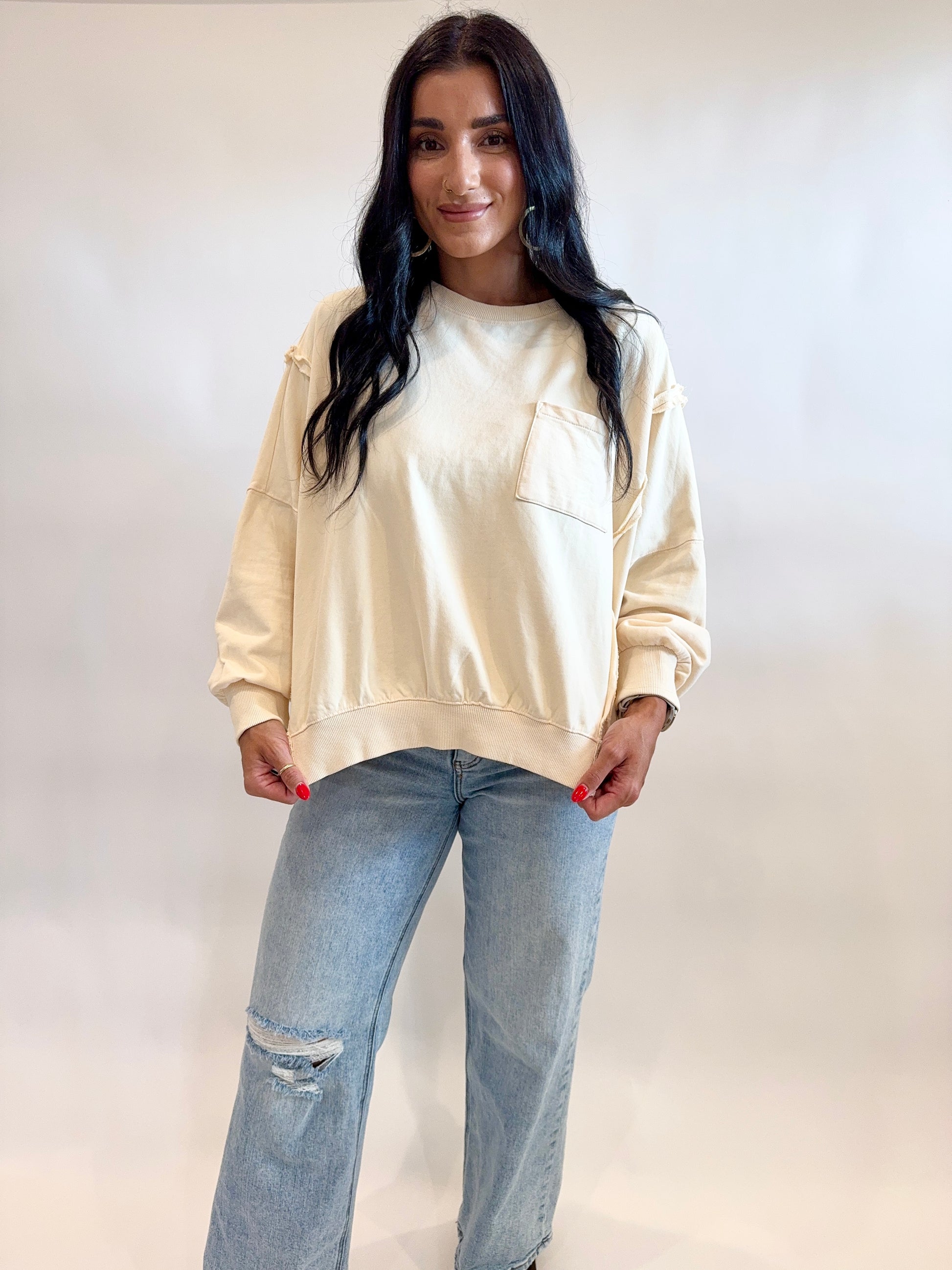 Cream French Terry Pullover